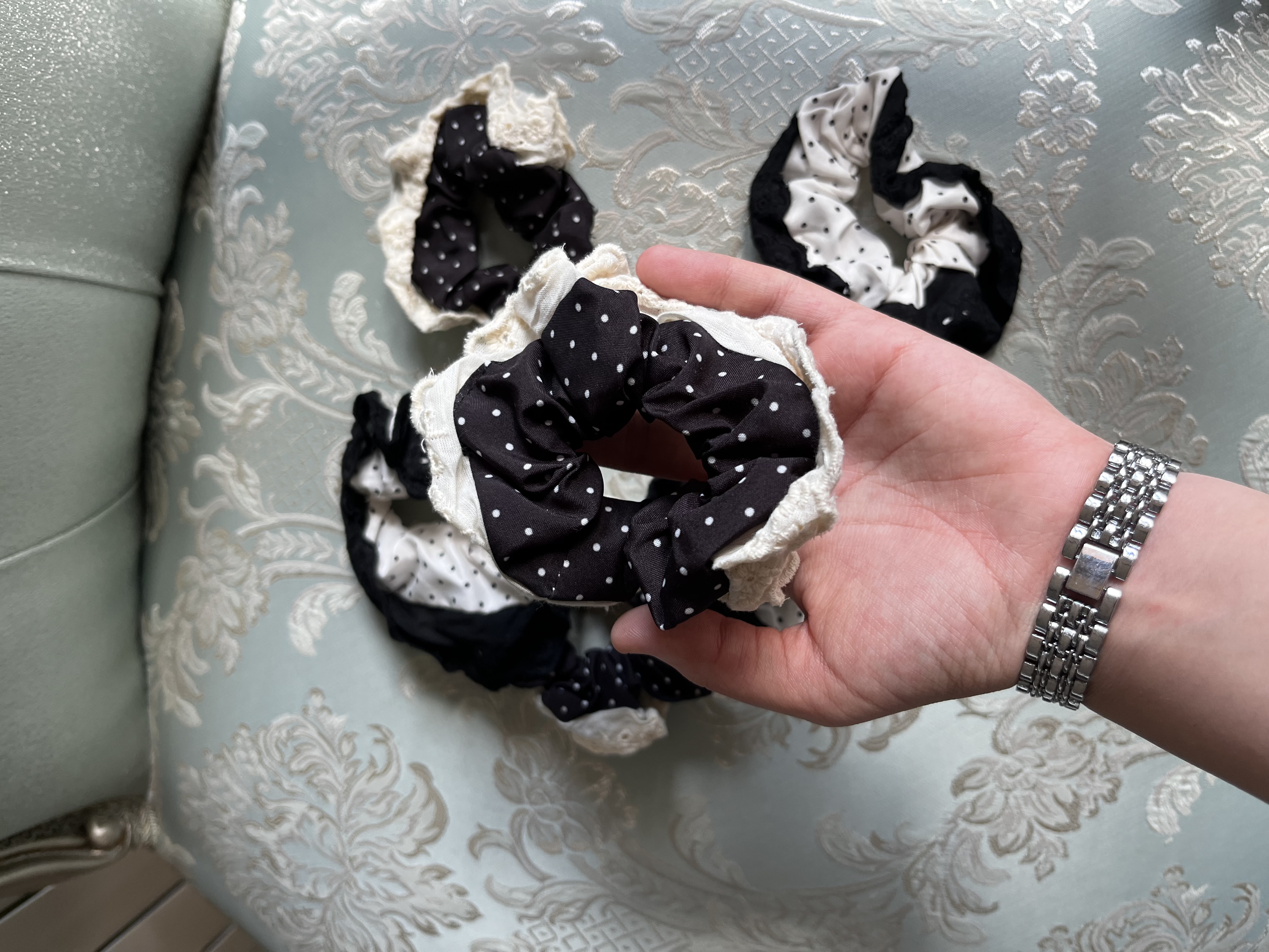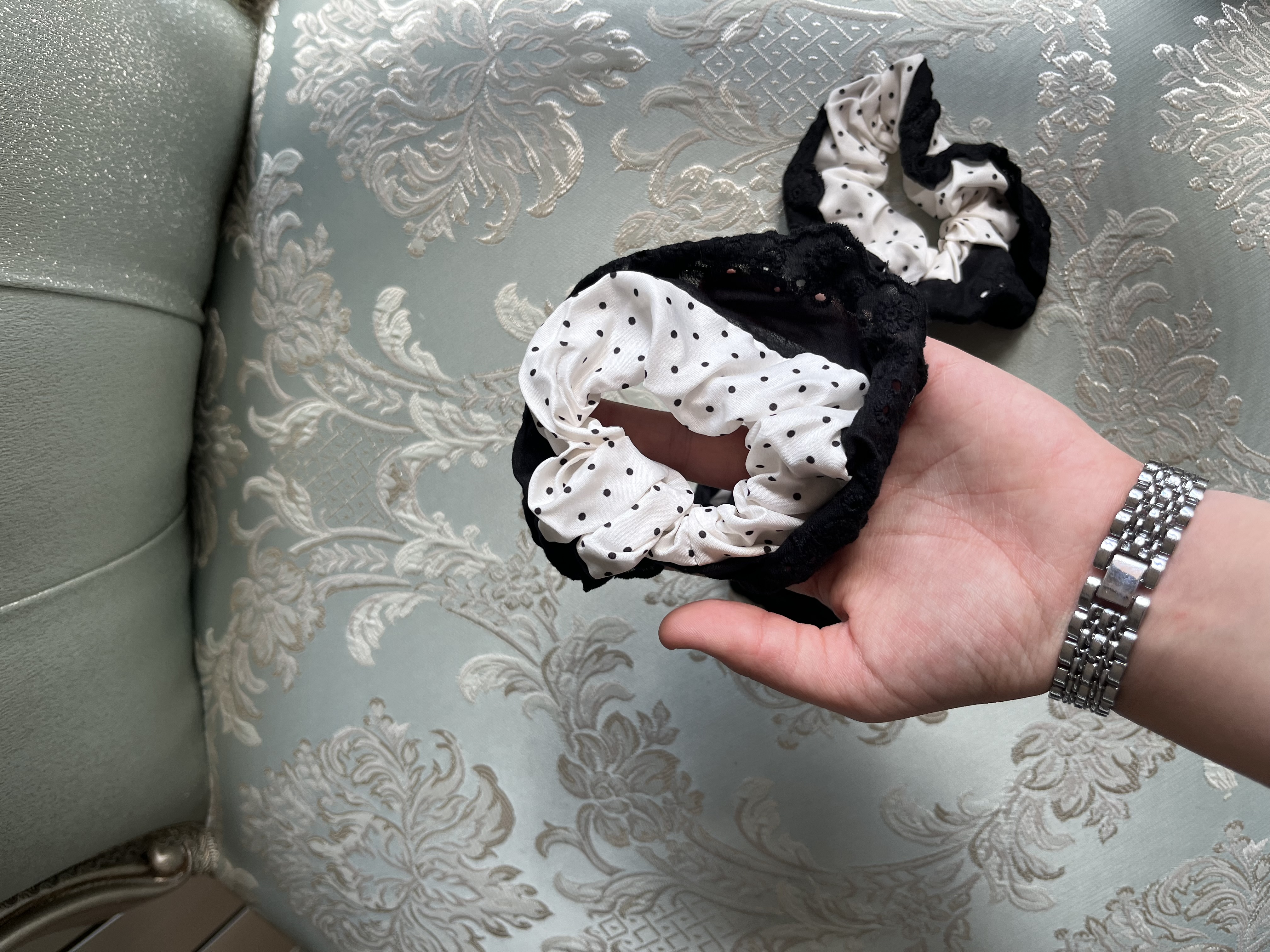 اسکرانچی ساتن سفید خال خالی